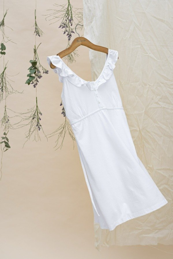 Camisón de calce suelto tipo musculosa, con cinta de ajuste en cintura y botones frontales ideales para lactancia