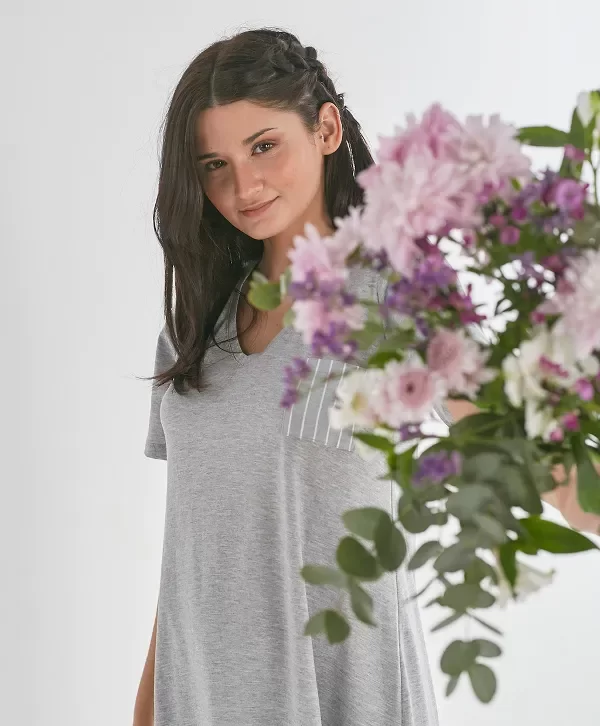 Camisón de calce suelto manga corta con escote en V.
