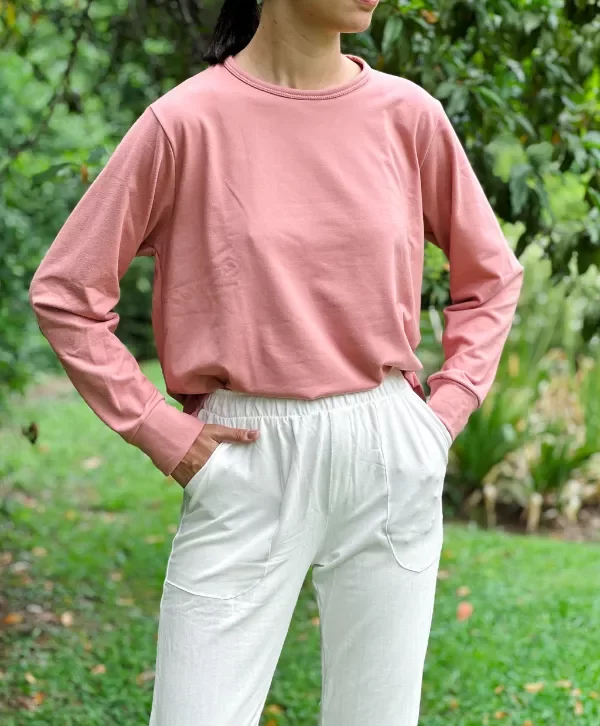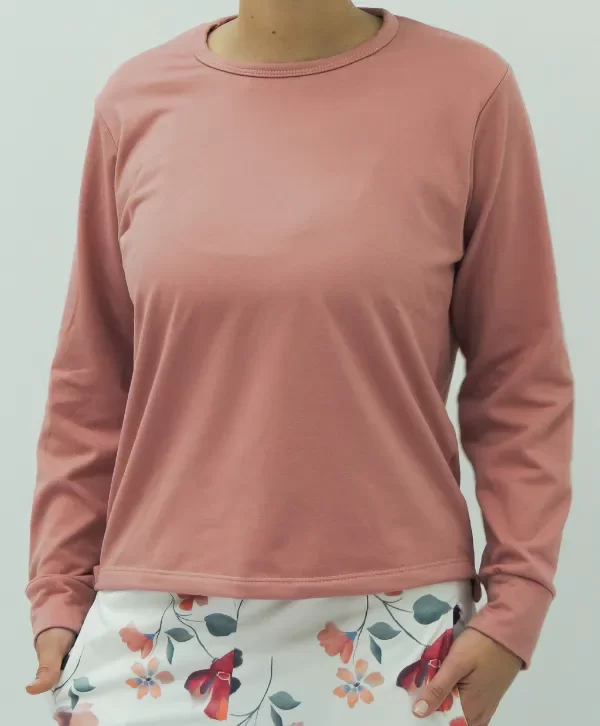 Buzo suave de cuello redondo con puños del mismo material que la base.