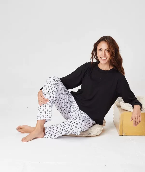 Conjunto de punto de remera y pantalón de punto con cintura elastizada.