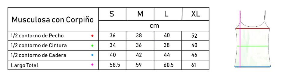 Musculosa con corpiño interior incluido.