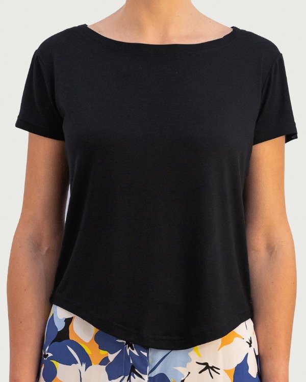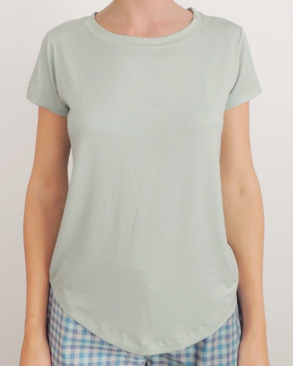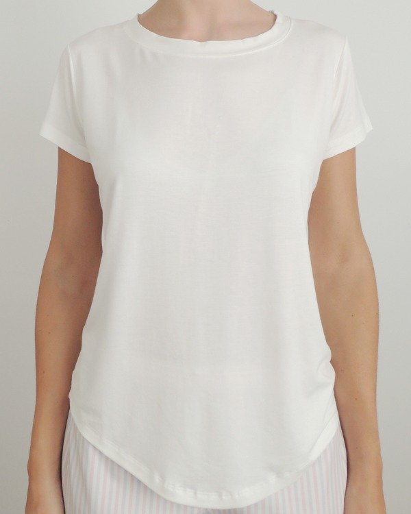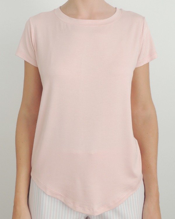 Remera manga corta de jersey, cuello redondo y terminación curva.