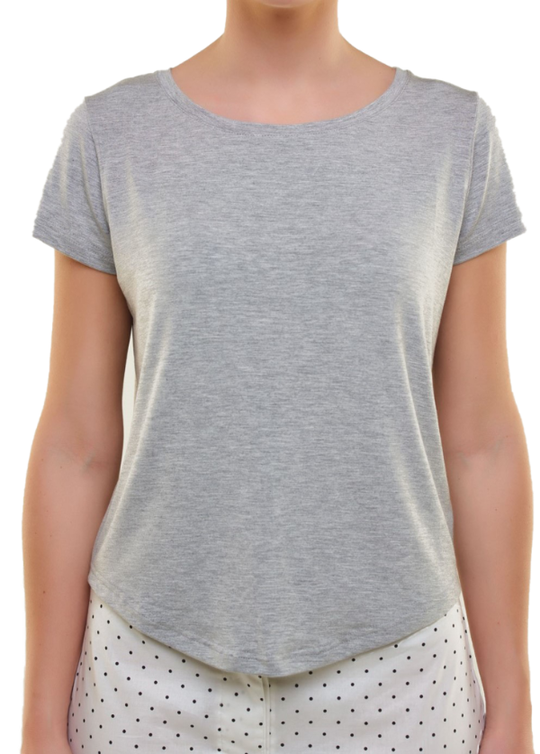 Remera manga corta de jersey, cuello redondo y terminación curva.